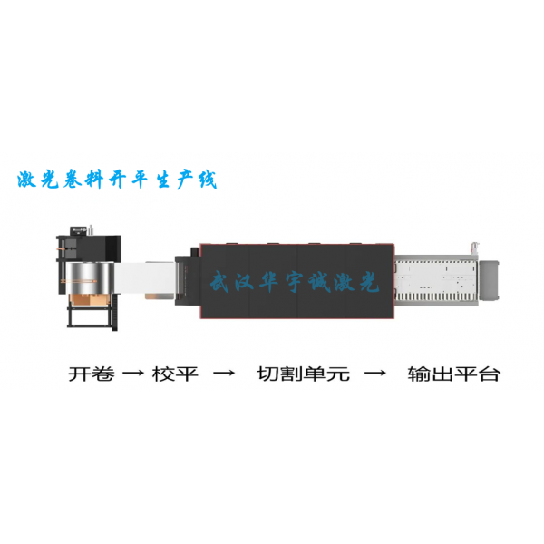 動態(tài)高精高速全自動激光開卷落料生產(chǎn)線,采用激光切割技術的開卷落料生產(chǎn)設備,由上料臺車、開卷機、校平機、伺服送料機、激光切割裝置、切割平臺、碼垛裝置、廢料處理系統(tǒng)、液壓氣動系統(tǒng)及電氣控制系統(tǒng)組成。